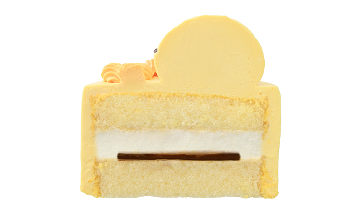 ふわふわのスポンジで生クリーム入りホイップクリームとカラメルソースをサンドし、プリン風味クリームでピカチュウの顔を表現しました。