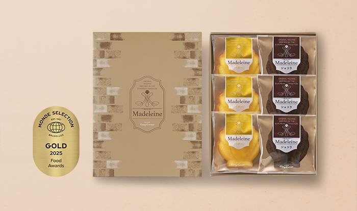 厳選した素材の味を引き立て、香り高く風味豊かに焼き上げた、貝殻をかたどったマドレーヌ。国産バターとたっぷり卵の濃厚な味わいが魅力の「バター」、芳醇なベルギー産チョコレートを使用した贅沢な味わい「ショコラ」、2つの味わいをアソートしました。