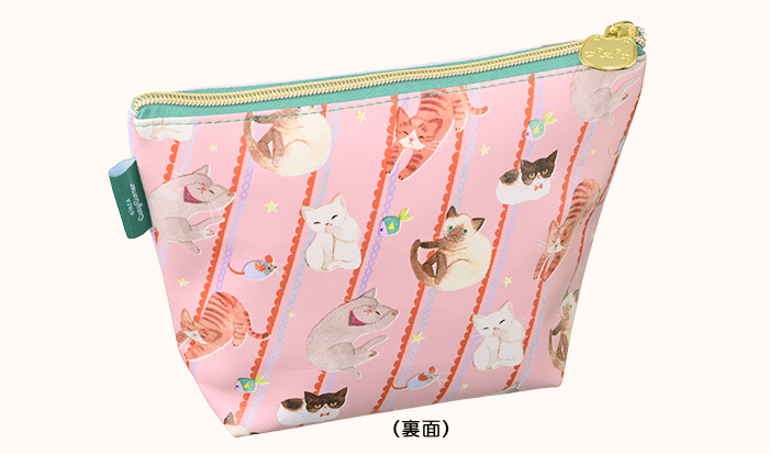 しっとりとした質感の合皮のポーチは、ファスナーの引き手部分が小ねこサブレをモチーフにしたチャームになっています。