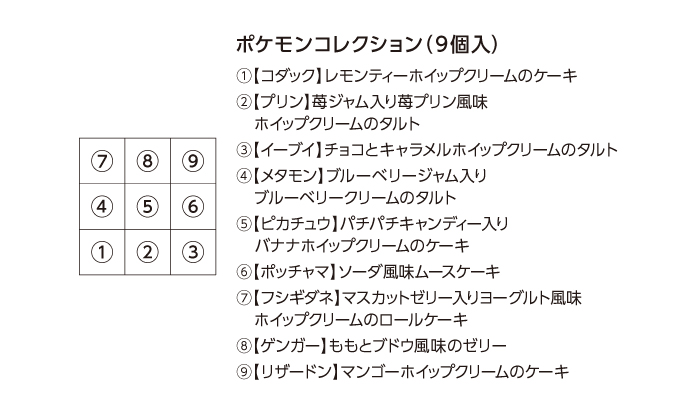 ポケモンたちを9種類のプチケーキで表現しました。